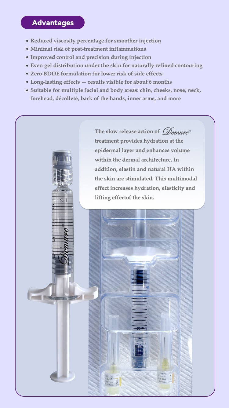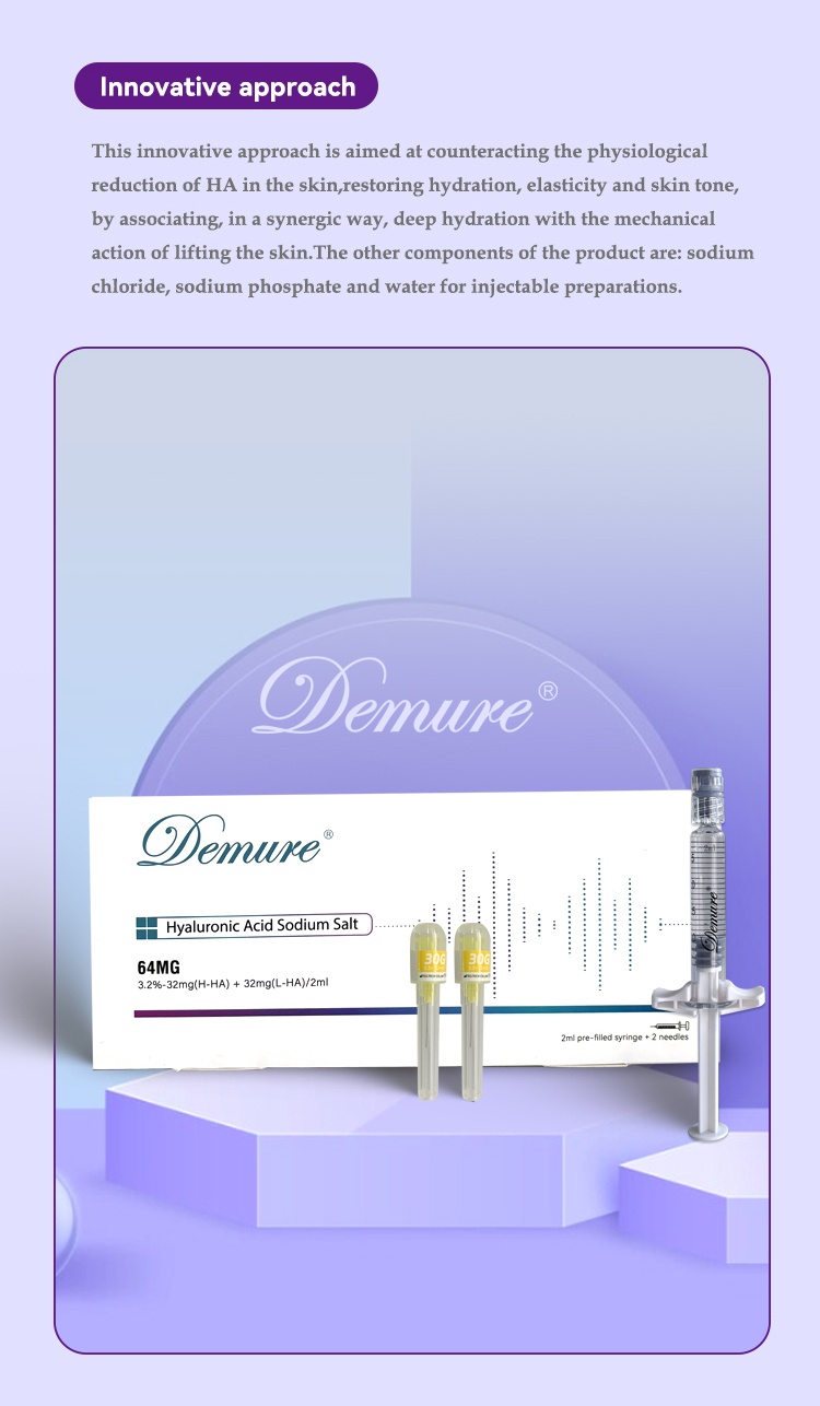 Demure HA L+H is a hyaluronic acid-based product manufactured without chemical crosslinking agents (BDDE). It contains a high concentration of hyaluronic acid (64 mg) available on the market. It is used to reshape and treat sagging skin, not only to fill lines and wrinkles.